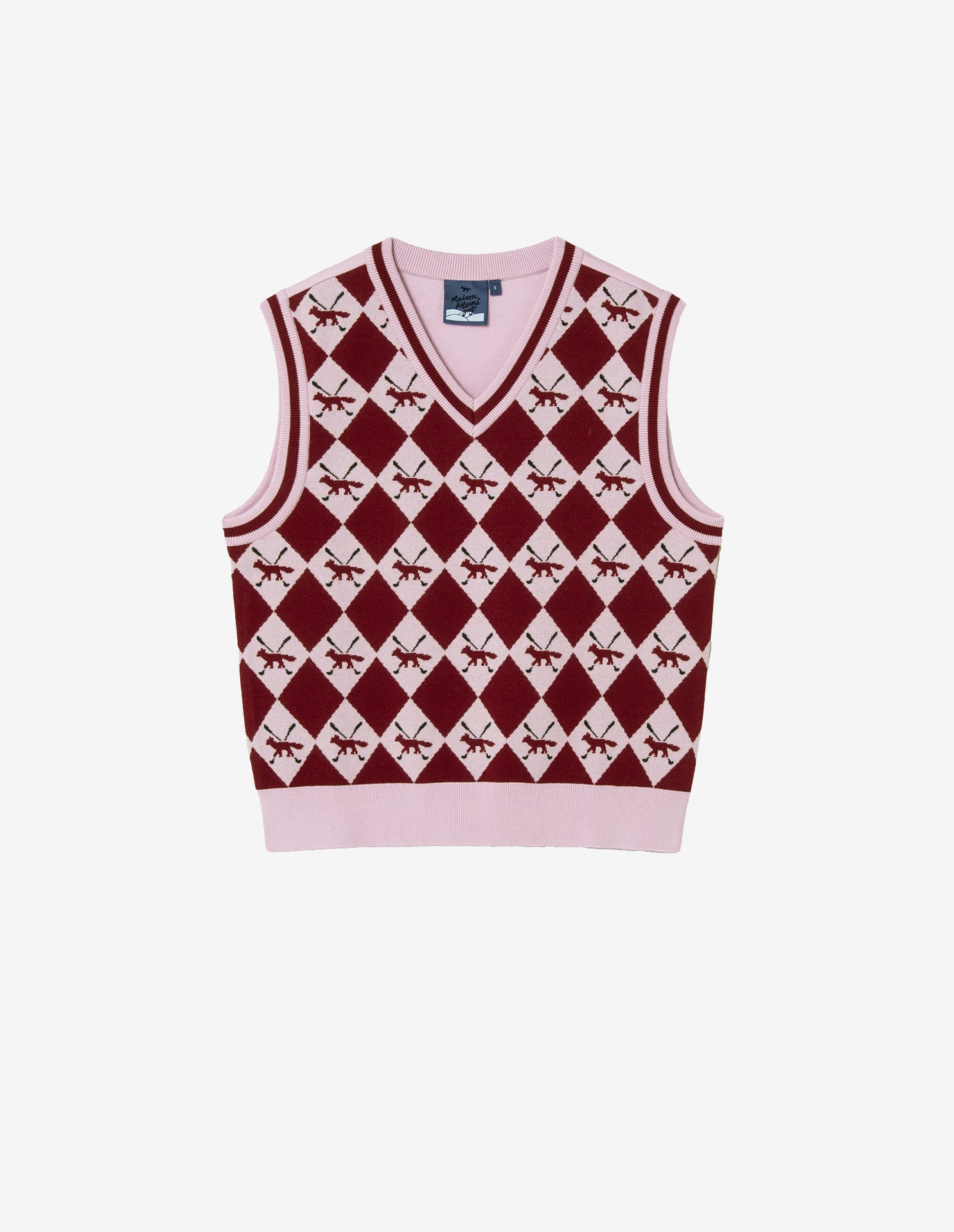 Women Profile Fox Argyle Vest -Maisonkitsune Store qz3951w01y 1